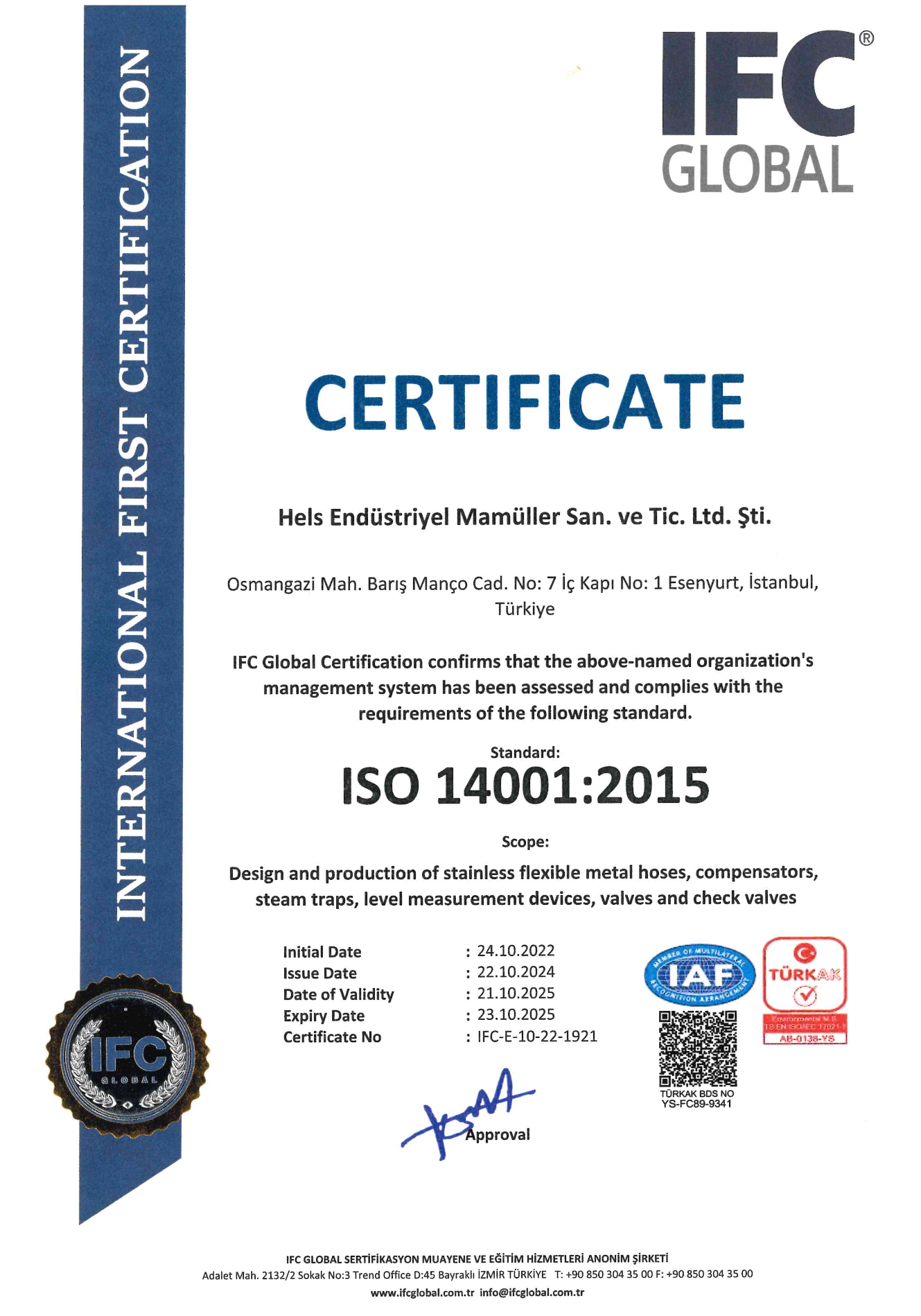 Certificate - HELS ENDÜSTRİYEL - 14001 - 2015