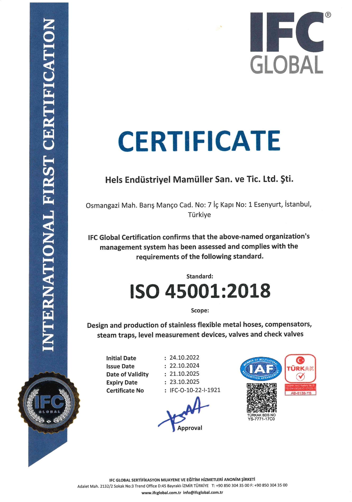Certificat - HELS ENDÜSTRİYEL - 45001 - 2018