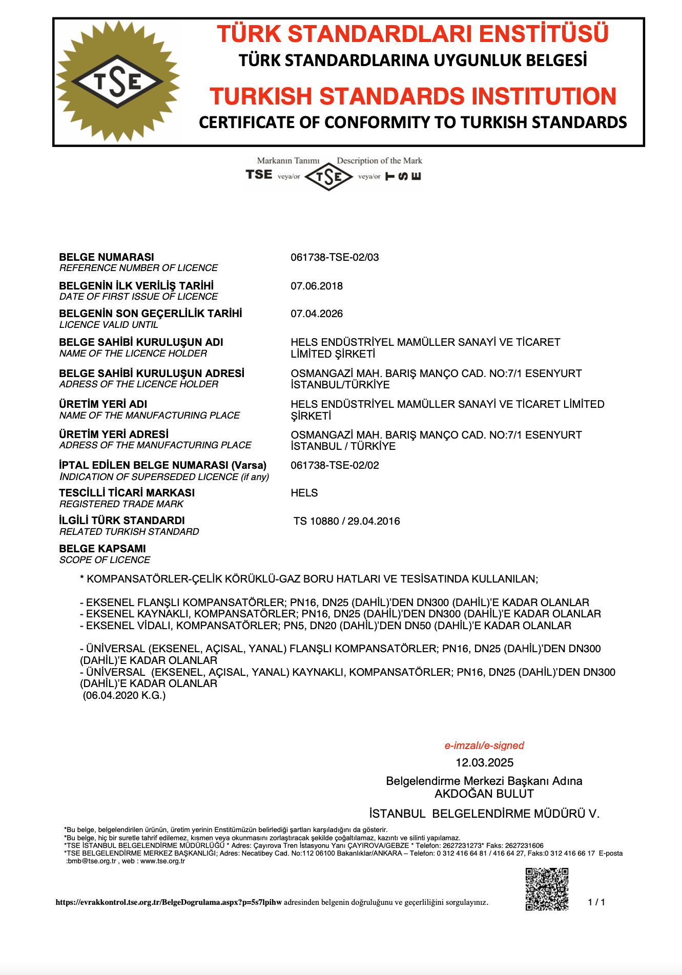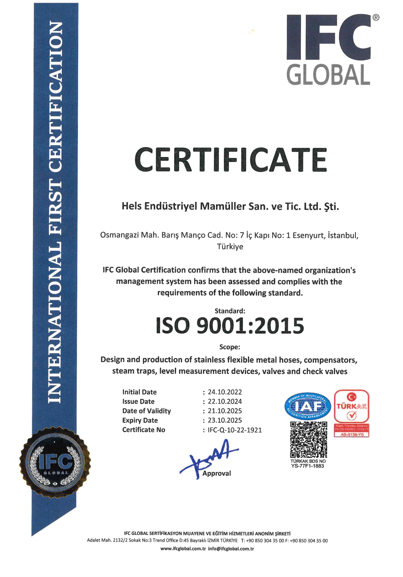 Certificat - HELS ENDÜSTRİYEL - 9001 - 2015